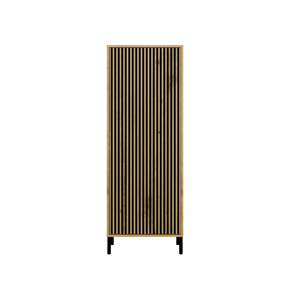 Le meuble KAMARO 1DD SLIM est le choix idéal pour votre salon, chambre d'amis ou bureau. Ses portes sans poignée avec façade rainurée et système TIP-ON lui confèrent un look moderne, et ses dimensions compactes lui permettent de s'intégrer facilement dans les petits espaces. Parfaite pour les livres, les décorations ou la vaisselle, elle ajoutera style et organisation à votre intérieur.