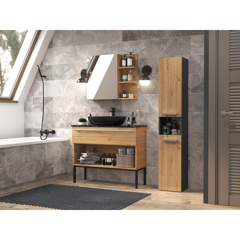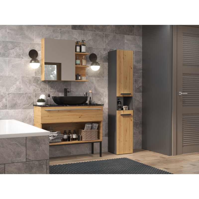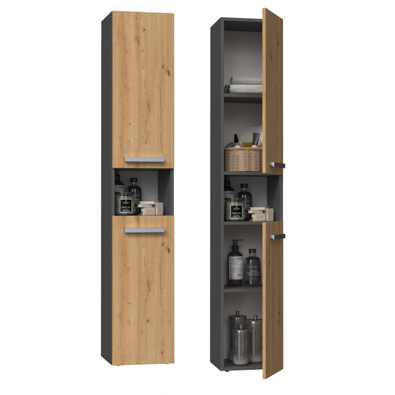 C’est un meuble de salle de bain de type colonne qui prend très peu de place. Il est équipé de 2 portes et d'une niche centrale. C'est un meuble fonctionnel et pratique qui vous permettra de rangement aisément vos affaires. La conception moderne et la réalisation soignée constituent un avantage supplémentaire de ce meuble.