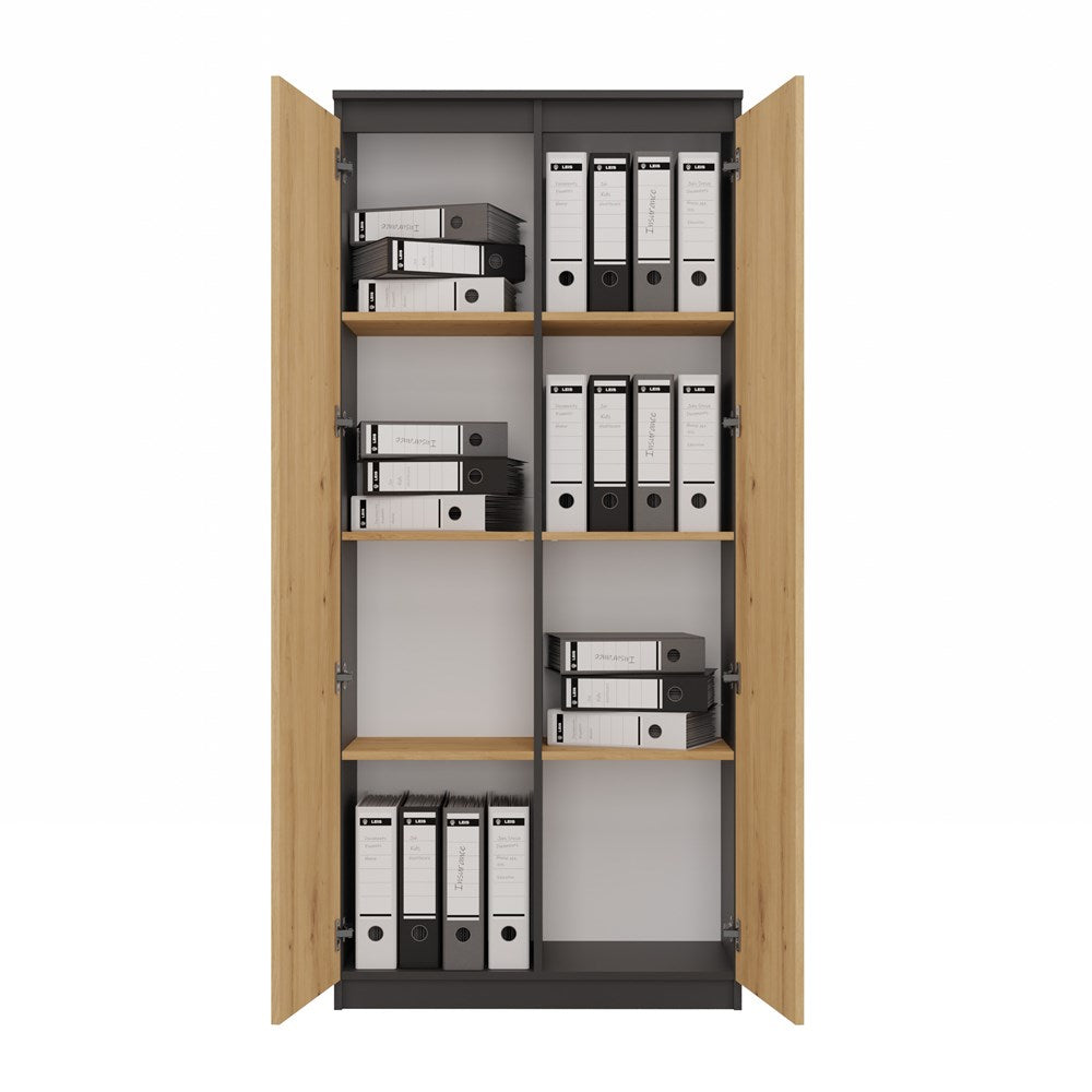 PRATO est un meuble multifonctionnel qui vous offre de belles possibilités de rangement. Cette grande armoire vous permettra de ranger toutes vos affaires. Elle trouvera facilement sa place dans toutes les pièces de la maison ou dans votre bureau pour faciliter le rangement des documents. Avec sa couleur sobre et design moderne, elle s'adaptera dans n'importe quel style. Sa structure en panneaux de particules mélaminés se caractérise par une grande durabilité et une finition tendance.