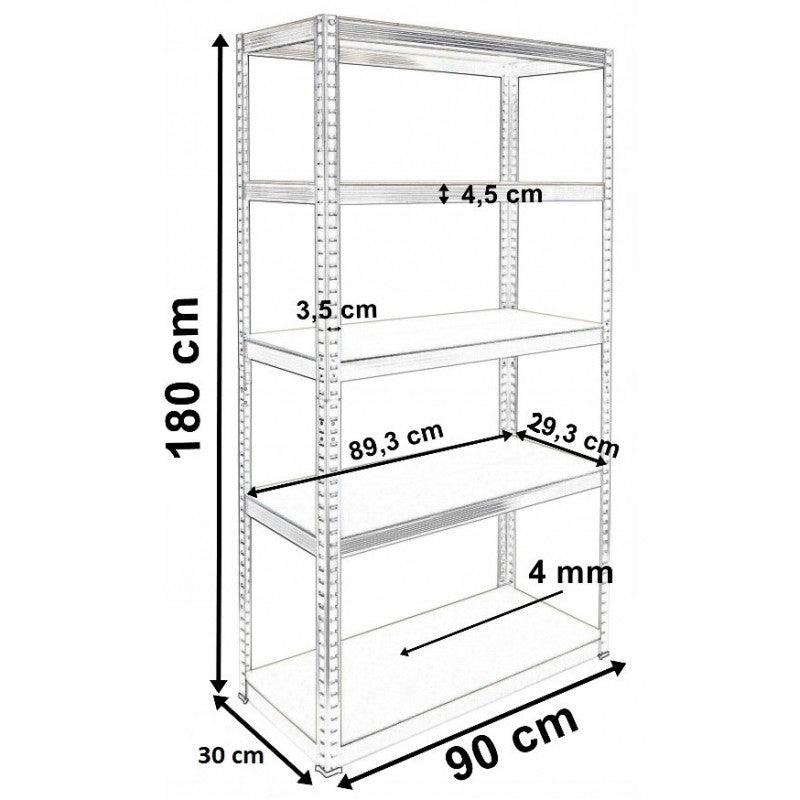 Le rayonnage métallique est une solution idéale pour maintenir l'ordre non seulement dans les espaces de vie, mais aussi dans les sous-sols, les garages, les entrepôts ou les magasins. Il s'agit d'un mobilier fabriqué à partir de matériaux de haute qualité tels que l'acier galvanisé et le panneau MDF. Des étagères solides d'une charge maximale de 175 kg chacune garantissent la stabilité et la durabilité. Le rayonnage doit être monté sur une surface stable et fixé au mur.