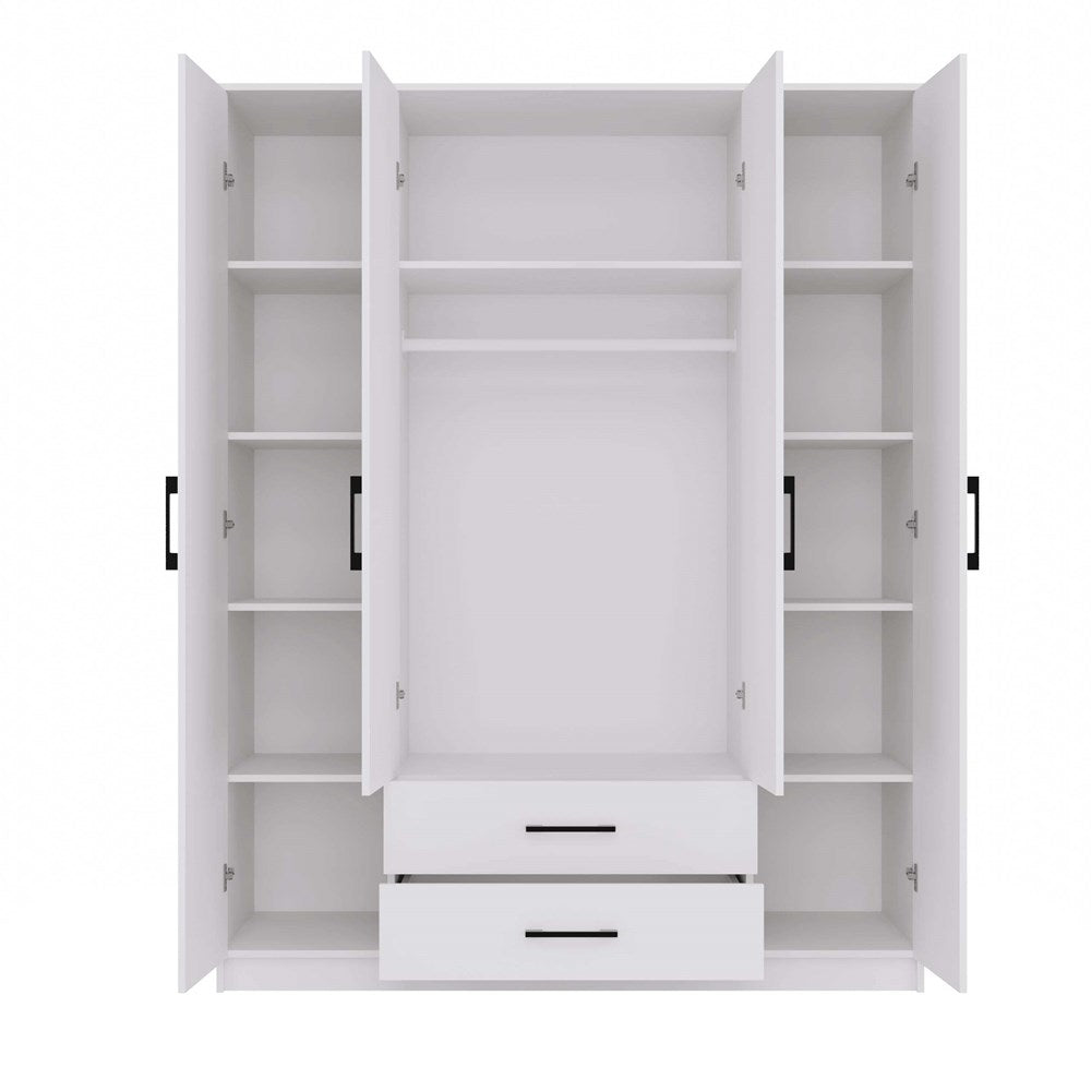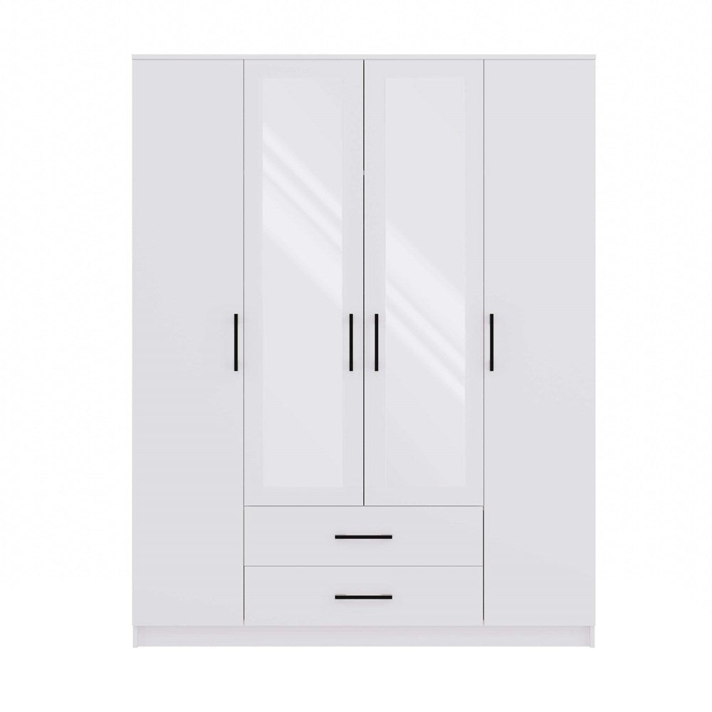 Profitez de l'espace de rangement que vous offre cette grande armoire pour ranger vos vêtements et sous-vêtements. Avec sa couleur sobre et moderne elle s'adaptera dans n'importe quel style de chambre. Elle est composée de quatre portes et 2 grands tiroirs de rangement. Avec sa penderie et multiples étagères elle sera parfaite pour y ranger toutes vos affaires. Sa structure en panneaux de particules mélaminés d’une épaisseur de 16 mm se caractérisent par une grande durabilité et une finition tendance